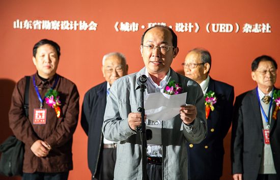 展览开幕式由策展人《城市·环境·设计》(UED)杂志社主编、天津大学建筑学院特聘教授彭礼孝先生主持。住房和城乡建设部原副部长杨慎先生,山东省住房和城乡建设厅副厅长宋守军先生,中国科学院院士、天津大学建筑学院名誉院长彭一刚先生分别致辞。杨慎、彭一刚、魏敦山、崔愷、周畅、王世农、宋守军、申作伟为展览开幕剪彩。