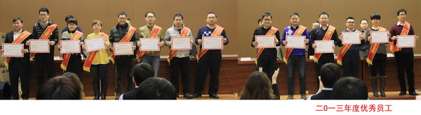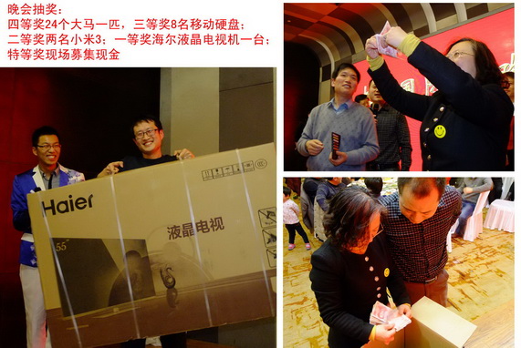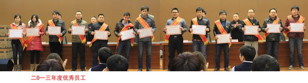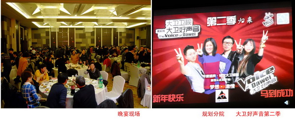 1月27日,公司全体员工齐聚一堂,在龙奥金座举行了二O一三年度工作总结表彰大会暨二O一四年大卫春晚,并于军悦酒店宴请邀请全体员工及家属。晚会临近结束时,抽取了4个现金大奖,每个奖金6000余元。