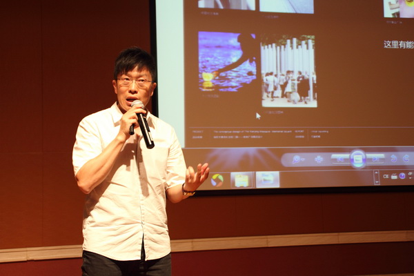 任总的演讲主题为“自然而然”,他通过三个最近完成的项目来探讨原创建筑中,建筑与自然以及周边环境互动的关系。其中米兰世博会中国企业馆的设计以以开放的姿态将自然环境引入建筑内部,形成生态中庭,参观流线随这一生态的自然空间盘旋而上,使游览者在建筑内外都可以感受到人、自然、建筑三者之间的密切联系,而在西北工业大学长安校区图书馆和北京建筑大学新校区图书馆两个方案中,设计策略以呼应学校内的场地肌理为出发点,以完整的几何形式和丰富的内部空间呼应周边场地与自然景观对建筑形式表达和空间塑造所带来的影响。