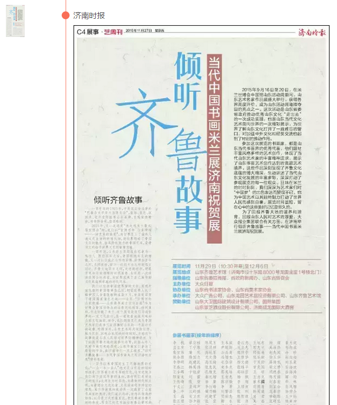 展览|“倾听齐鲁故事”——米兰世博会山东书画展持续进行中