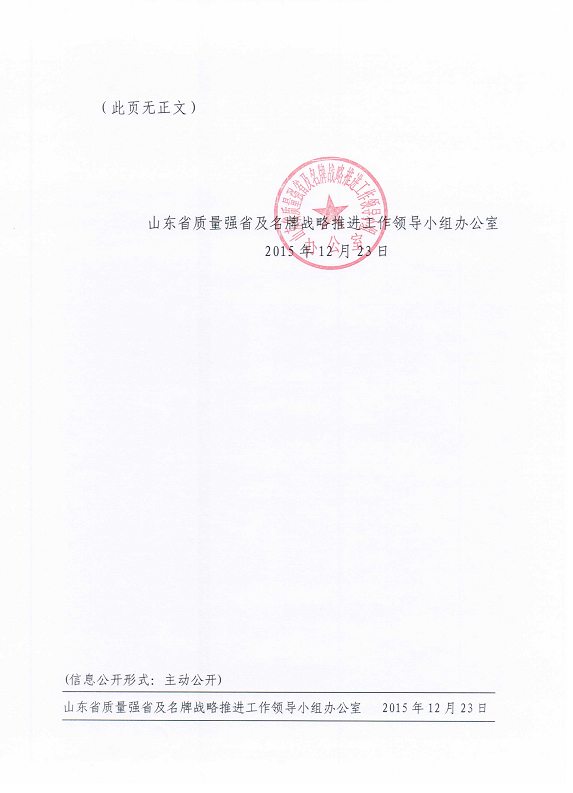 山东省质量强省及名牌战略推进工作领导小组办公室关于2015年度山东省服务名牌认定结果