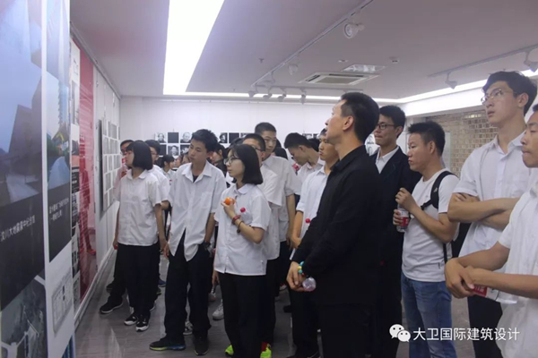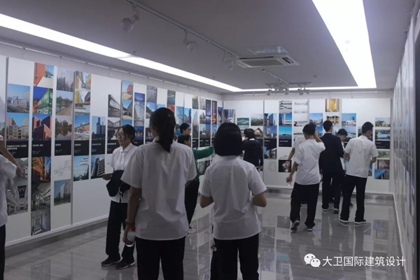 一分院院长助理张生和生产技术部吕军主任带领同学们参观了大卫国际建筑艺术馆及设计师办公环境,参观中向同学们作了细致的讲解和介绍,同学们看的目不转睛,听的津津有味。