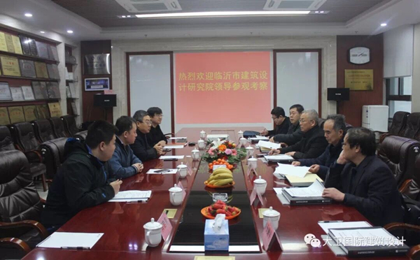 2018年3月8日,临沂市建筑设计研究院领导来我院考察。参观我院的办公环境及大卫国际建筑艺术馆、健身房等员工学习交流的活动场所。会议上,临沂市建筑设计研究院亓树生董事长介绍了此次考察目的和双方交流学习的内容,我院申作伟董事长也对公司作了详细介绍。此次活动增加了两院之间的相互了解,促进了双方更好的交流学习。