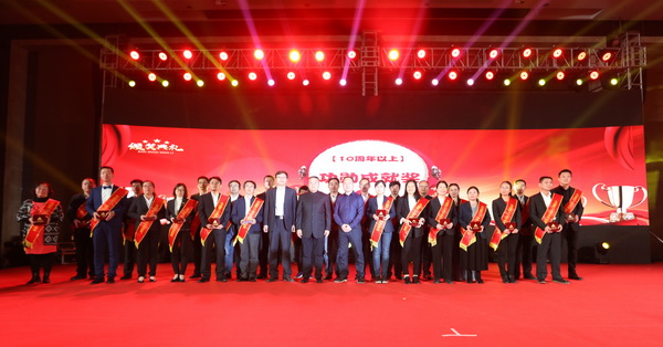 大卫国际董事长申作伟先生携全体员工及优秀合作伙伴,特邀嘉宾们一同祝福大卫国际二十周年,共享庆典盛宴。回首二十年的风雨和荣光,展望美好未来。 庆典之上,大卫国际董事长申作伟先生发表了致辞,申董事长回顾了大卫国际二十年的进程与历史,向一直坚守在一线与公司共同成长的员工表达了深深的谢意,感谢客户、同行业、合作伙伴的大力支持,在致辞的最后,对大卫国际未来的发展提出了要求与期望,激励每一位员工不断前进,再创佳绩。而此次周年庆,公司对入职10年及15年以上的老员工颁发了具有纪念意义的功勋奖,代表了公司对老员工的感谢。在不断注入新鲜血液的同时,也要时刻感恩老员工在公司成长中所做出的贡献。