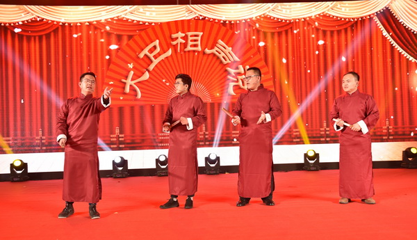 晚会现场举办了周年庆生的特别环节,当生日蛋糕缓缓进入舞台的中央时,全场600余人共同唱起了欢快的生日祝福歌。随后进行的文艺演出也异常绚丽,诗朗诵,现代流行舞,相声等节目精彩纷呈,表演者在台上倾情演出,台下掌声不断,笑语不断,把现场的气氛一次次推向了高潮。