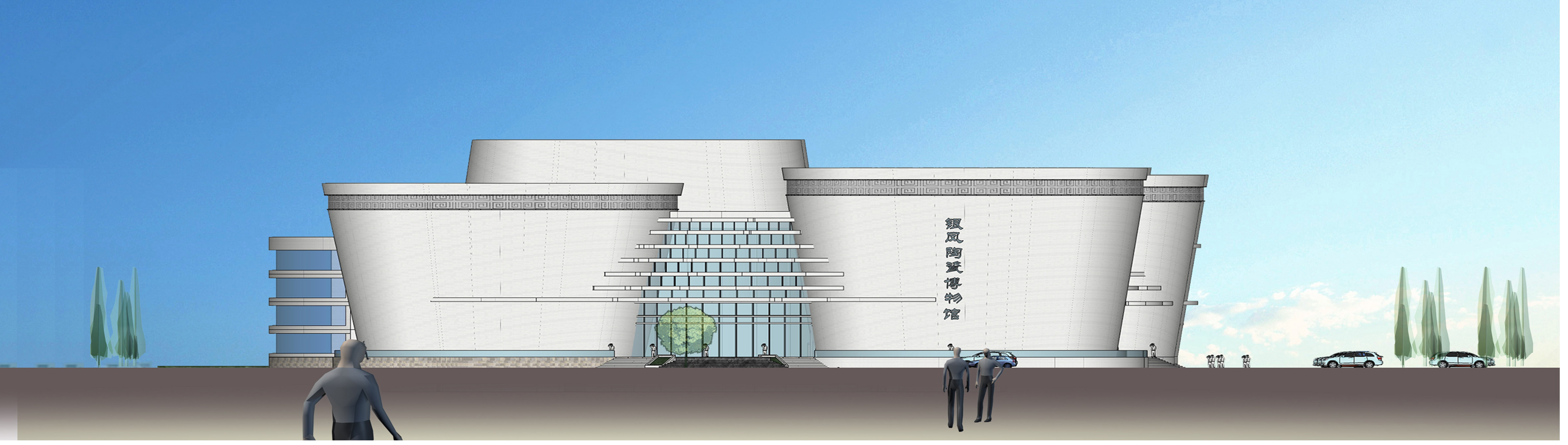 本设计从层层叠叠的瓷盘,大小不一的瓷碗作为出发点,用线条与体块把陶瓷的形象展示出来。上大下小的形体可以颠覆人们对传统建筑的认识,给人视觉上的冲击力,另外层层递推,重叠而上的片层,本意源于层层叠叠的瓷盘,经过处
